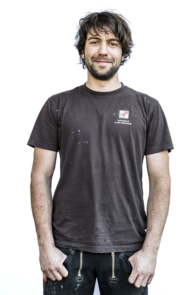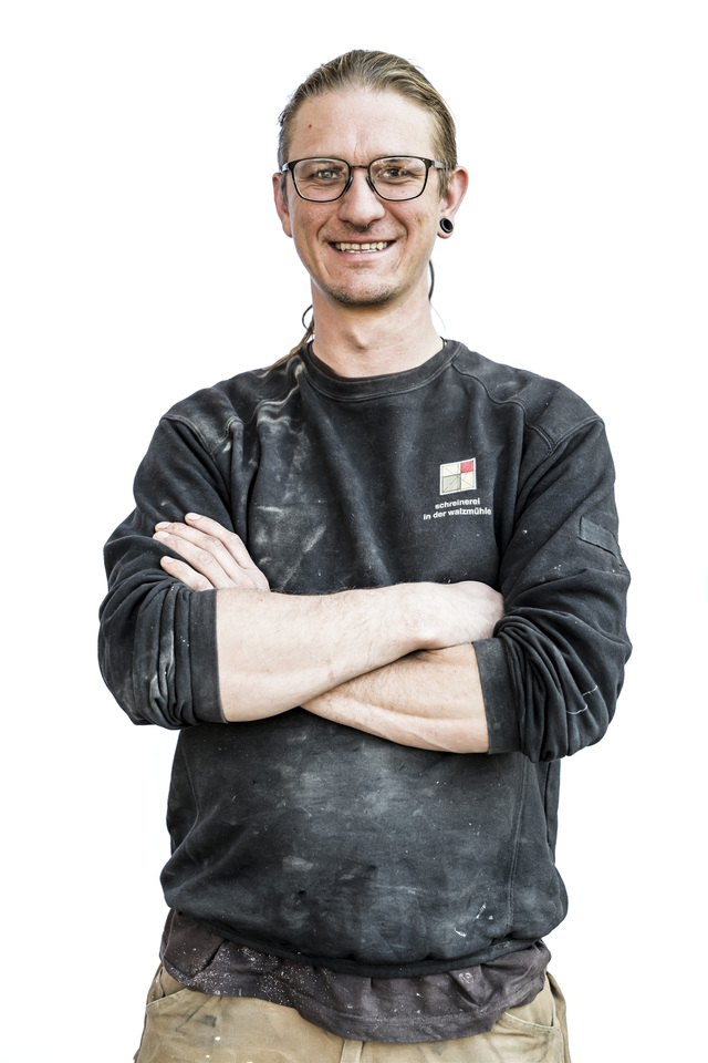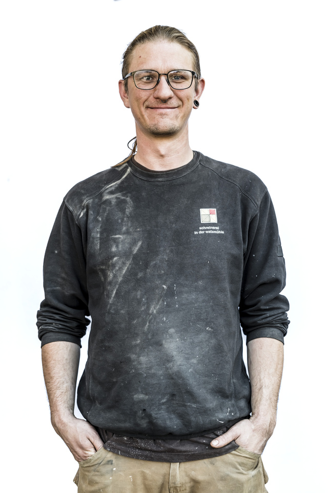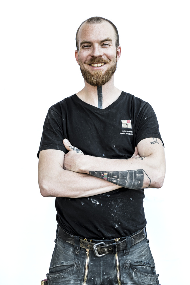 Yanis Stöger - Der Schreinergeselle und Sohn von Manfred Walcher hat Künstlerblut in den Adern. Er bereichert unser Team bei allen Fragen, die sich um Oberflächengestaltung, Lackierung und Kunst drehen.